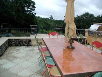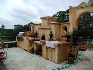 The outdoor kitchen with Bread-oven, BBQ, sink and beverage refrigerator